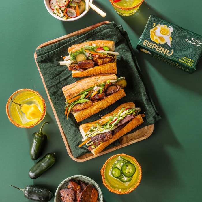 Banh mi on vietnamilainen leipä, joka valloittaa! Se on katuruokaklassikko, täytetty herkkuleipä, jossa rapean patongin, mehukkaan lihan ja raikkaiden kasvisten yhdistelmästä muodostuu vastustamaton kokonaisuus. Banh mi -patongit sopivat niin illanistujaisiin, evääksi kuin herkulliseksi lounaaksikin. Täytteeksi voit valita perinteisen possun, paistetun tofun tai kanan – makunautinto on taattu!