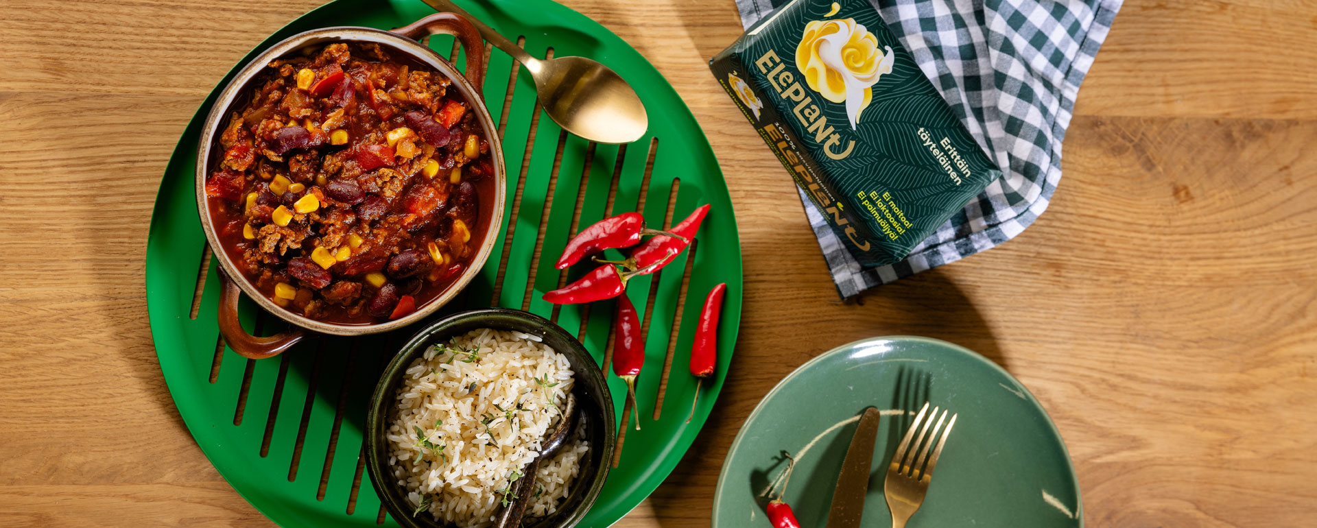 Chili con carne ja paistettu riisi on erinomainen arkiruoka, joka saa makua valkosipulista ja chilistä. Riisin kanssa sopii myös sweet chili kanaviilokki, joka on hieman miedompi versio, ja maistuu varmasti koko perheelle.