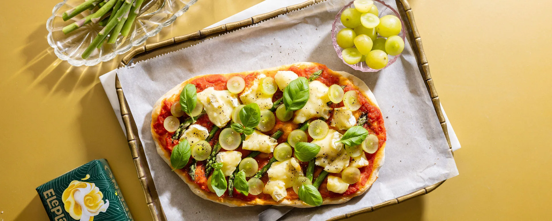 Nauti kesästä herkullisen briejuusto-parsapizzan kera, joka valmistuu kätevästi grillissä! Itsetehty pizza tarjoaa täyteläisen makumaailman kevään parsasta, herkullisesta briejuustosta ja raikkaista viinirypäleistä. Voit valmistaa koko pizzan grillissä tai uunissa helposti kotona. Valmista pizzapohja helposta pizzataikinasta, levitä itsetehty tomaattikastike, lisää pizzaan täytteitä mielesi mukaan ja nauti herkullisesta lopputuloksesta. Resepti on helppo muuntaa vegaaniseksi jättämällä briejuusto pois tai korvaamalla se kasvipohjaisella vaihtoehdolla. Pizza on aina hyvää ja itse omin käsin tehty pizza vielä parempaa.