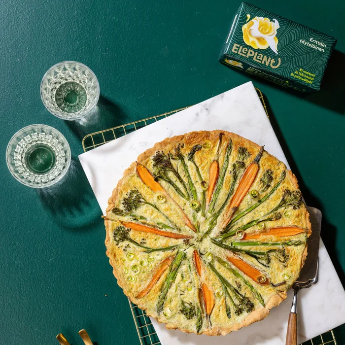 Sopivan suolainen kasvispiirakka on yhtä lailla arjen herkku kuin juhlien tarjottavakin. Tässä herkullisessa piirakassa yhdistyvät kevään ja alkukesän parhaat maut ja näyttävä lopputulos, mikä tekee siitä erityisen sopivan hienoimpaankin juhlapöytään. Piirakasta saa myös helposti vegaanisen, jolloin se sopii kaikille ruokavalioille. Valmista helppo piirakkapohja ja täytä se Eleplantissa kuullotetuilla, makeilla kevätkasviksilla. Ne tuovat piirakkaan paitsi herkullista makua, myös kauniin ulkonäön. Reseptiä on helppo seurata, joten vaikka olisit vasta-alkaja keittiössä, voit luottaa siihen, että lopputulos on täydellinen. Ihastu kevään kasvispiirakkaan ja yllätä vieraasi herkullisella tarjoilulla!