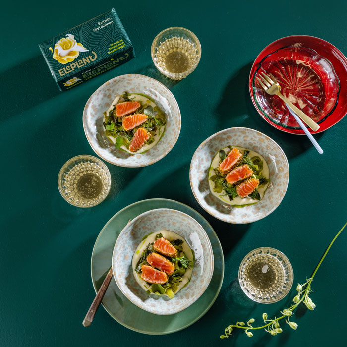 Lohipastrami on kuin graavatun, paistetun ja marinoidun lohen täydellinen välimuoto. Lopputuloksena on kauniin paahdettu pinta ja punertava, mehukas sisus. Juhlava annos tarjoillaan Eleplantissa haudutetun purjon ja raikkaan limevoikastikkeen kanssa. Vaikka aktiivinen valmistusaika on lyhyt, passiivista aikaa tarvitaan noin 4 tuntia, mieluiten yön yli, jotta maut ehtivät syventyä. Varaa siis aikaa ja herkuttele tällä täydellisellä reseptillä esimerkiksi uudenvuoden juhlissa!