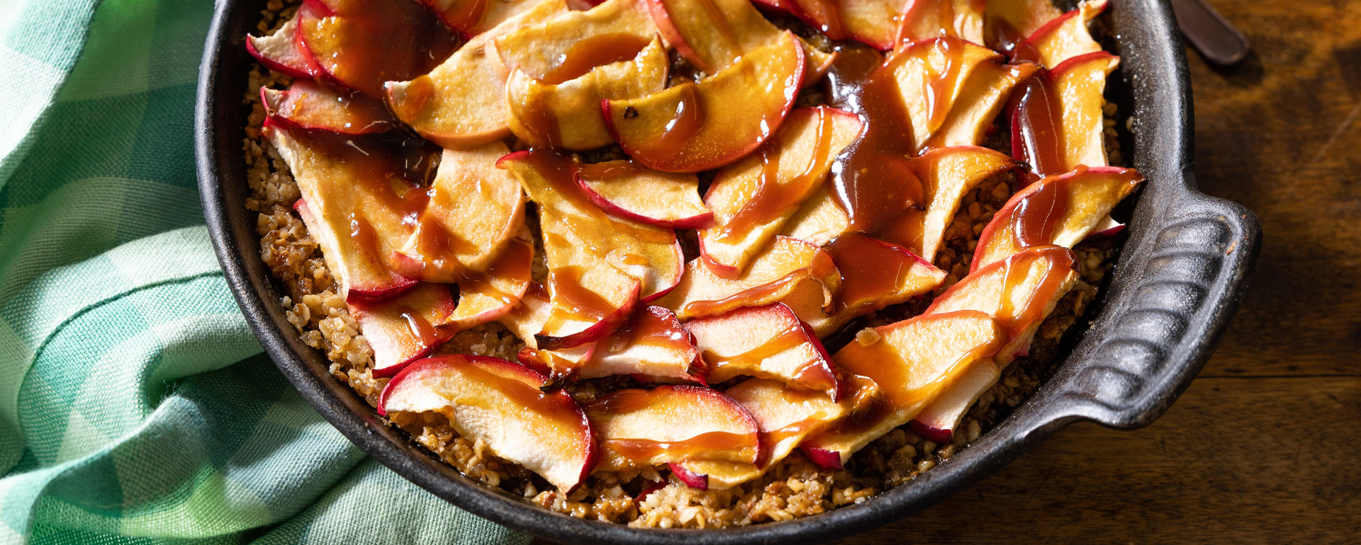 Klassinen omena-kaurapaistos on helppo syksyinen jälkiruoka, joka maistuu monelle. Paistoksen voi hyvin valmistaa myös päärynästä. Tarjoile herkku itse keitetyn kinuskin kera.