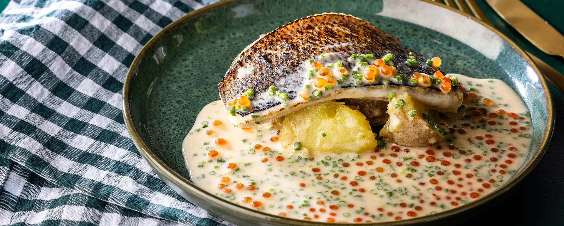 Eleplantin saaristolaisleipä on herkullinen ehdotus lsukkeeksi siialle, krossatulle perunalle ja mäti-voikastikkeelle.