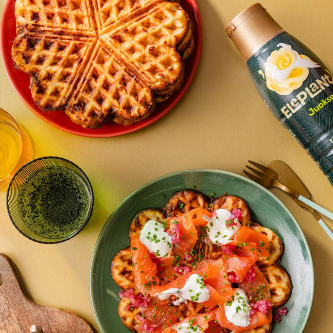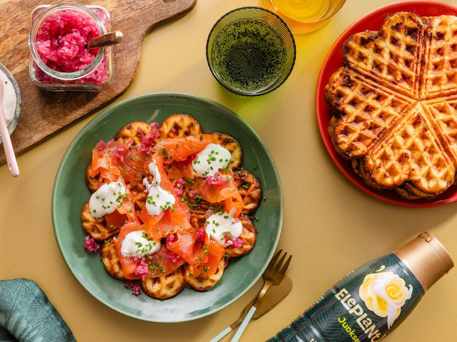 Juustovohvelit ovat helppo ja näyttävä valinta, kun haluat jotain erityistä brunssille tai viikonlopun lounaalle. Taikinaan lisätty juusto tekee vohveleista täyteläisiä ja rapeita, ja päälle kasattava kylmäsavustettu kirjolohi, pikkelöity punasipuli ja lusikallinen creme fraichea muodostavat raikkaan, suolaisen kokonaisuuden. Vohvelit suolaisella täytteellä sopivat myös illanistujaisiin.