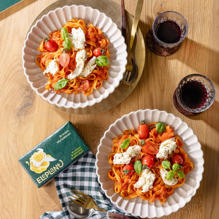 Valmistaudu seikkailuun italialaisten makujen maailmassa tämän ihanan tomaatti-mozzarellapastan seurassa. Tämän tomaattipastan salaisuus piilee sen täyteläisessä itsetehdyssä tomaattikastikkeessa, joka antaa makuhermoille unohtumattoman makuelämyksen. Lisää reilusti revittyä mozzarellajuustoa pastan päälle ja viimeistele annos tuoreella basilikalla sekä ripauksella mustapippuria. Reseptimme tarjoaa taianomaisen yhdistelmän tuoreiden tomaattien ja pehmeän mozzarellajuuston herkullista makua, joka sopii niin arkeen kuin juhlaankin. Yksinkertainen valmistaa, mutta täynnä makua! Tämä tomaatti-mozzarellapasta on varma suosikki ruokapöydässä. Kutsu ystävät tai perhe koolle ja valmista herkullinen ateria koko porukalle.