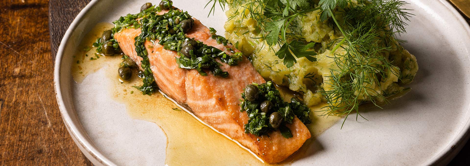 Nosta lohet lautaselle ja annostele viereen murskattua perunaa. Lusikoi lohen päälle ruskistettu Eleplant-kastike ja viimeistele tillin oksilla.