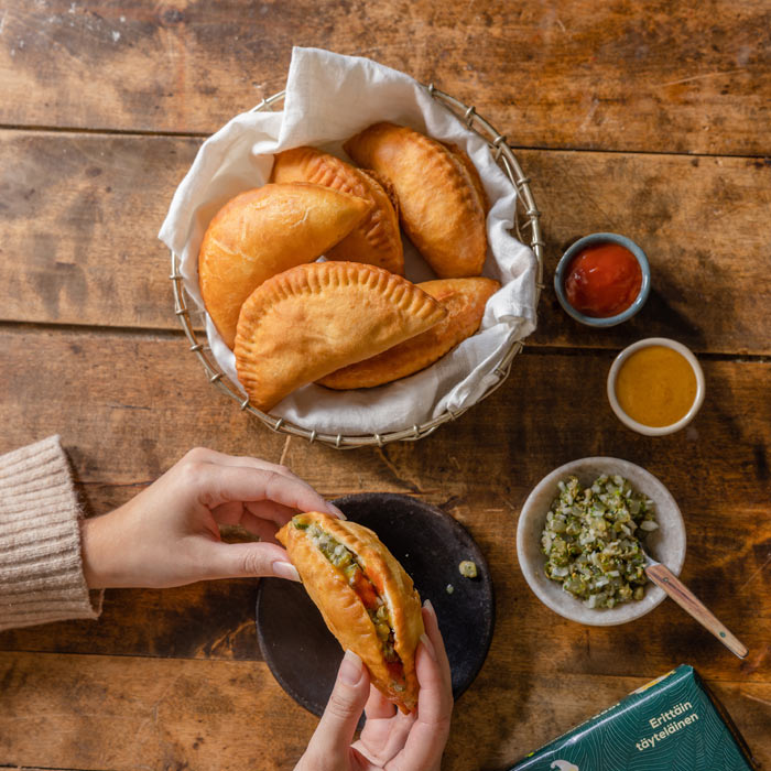 Vihikset ovat uppopaistettuja kasvispiirakoita, jotka sopivat niin lounaaksi kuin iltapalaksikin. Täytettä voi muokata omien mieltymysten mukaan. Proteiinin lähteenä voi käyttää myös esimerkiksi tofua tai nyhtökauraa. Sienet voi korvata esimerkiksi kaalilla tai munakoisolla. Vihikset voi hyvin kypsentää myös uunissa. Voitele ne kananmunalla ja paista 220-asteisessa uunissa noin 10-12 minuutin ajan. Voit valmistaa tällä reseptillä myös perinteiset lihapiirakat.