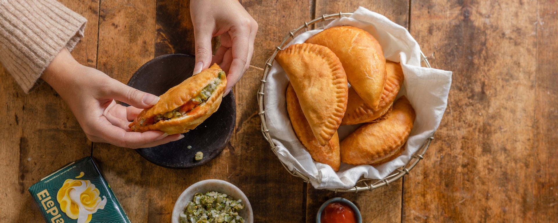 Vaivaa taikinasta palloja, jonka jälkeen kauli taikinasta ohuita pyöreitä levyjä. Laita iso lusikallinen täytettä levyjen päälle ja taita levyjen saumat yhteen. Paina saumat tiiviiksi haarukalla. Uppopaista piirakoita 180-asteisessa öljyssä 3 minuuttia per puoli. Nosta piirakat talouspaperin päälle kuivumaan.